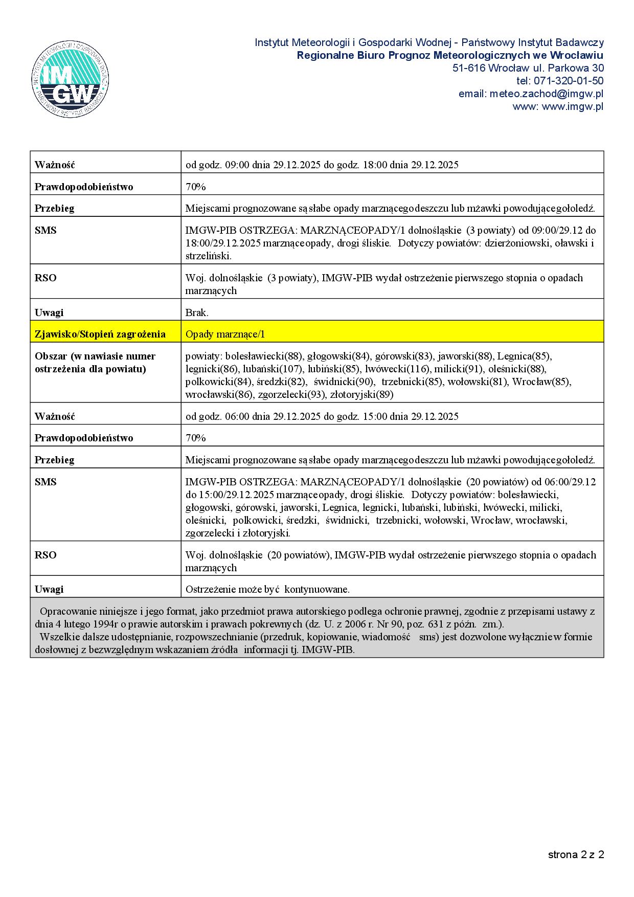 Instytut Meteorologii i Gospodarki Wodnej wydał ostrzeżenie dla województwa dolnośląskiego. Zachęcamy do zapoznania się z informacją. Szczegóły poniżej: