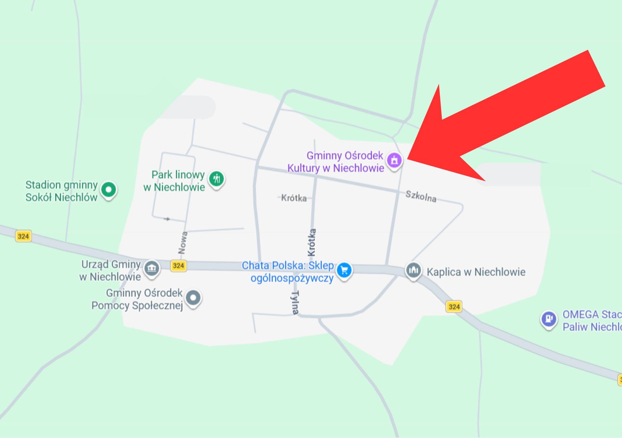 Klub Rozwoju Cyfrowego mieści się w Gminnym Ośrodku Kultury w Niechlowie przy ul. Dworcowej 9, w sali nr 1.