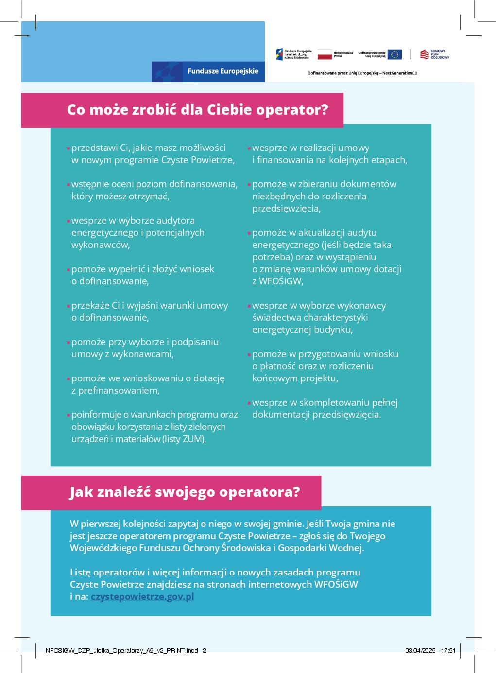 📄 Ulotka o wsparciu beneficjenta przez operatora