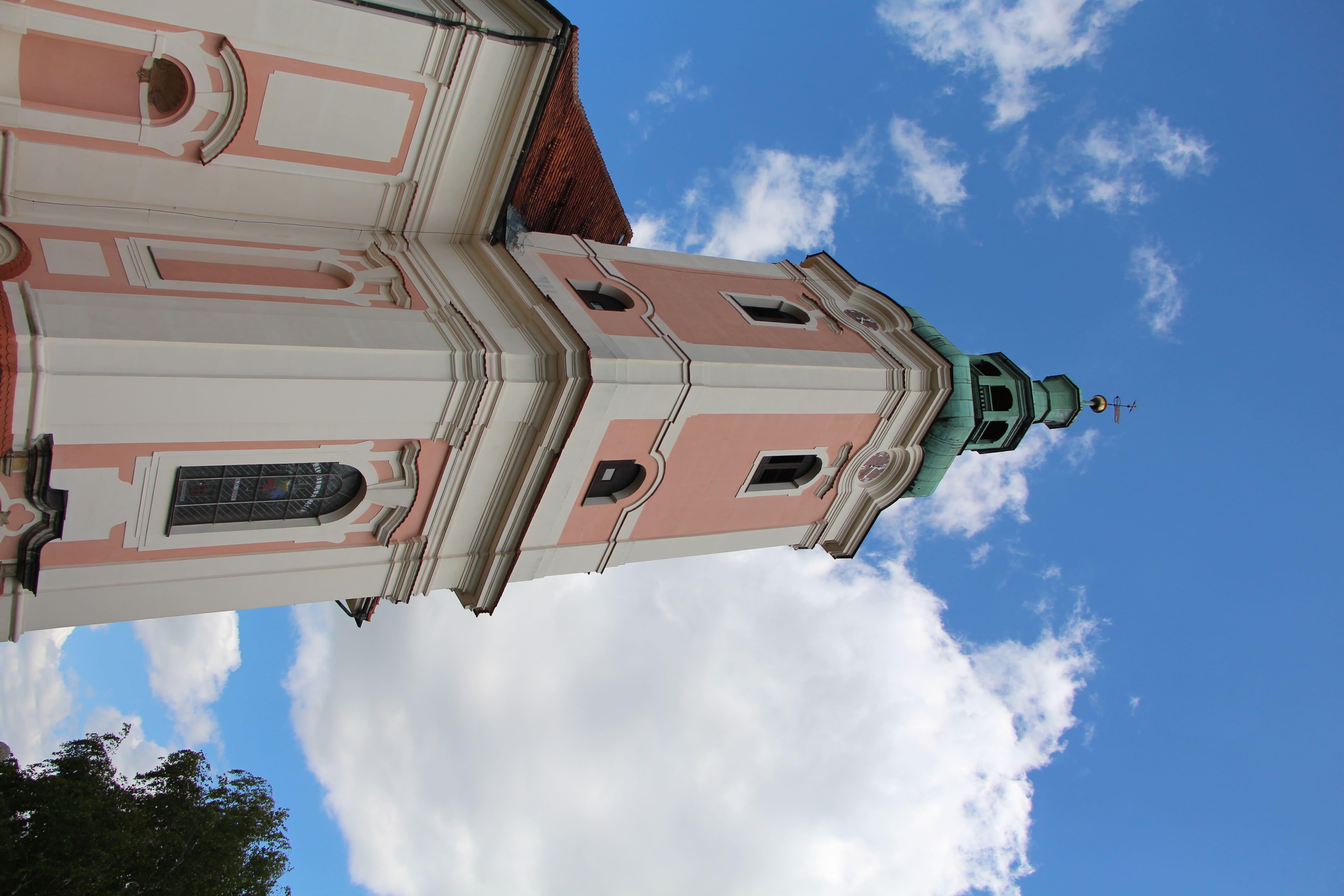 Po raz pierwszy kościół w Sicinach wzmiankowany był w 1289 roku. Pierwsza świątynia w Sicinach była konstrukcją drewnianą. W XV wieku drewniany budynek kościoła zastąpiono budowlą kamienną, której wizerunek zachował się na sufitowym fresku hali wieżowej współczesnego kościoła, który został wybudowany latach 1736-1740 przez Karla Martina Frantza wg. projektu nieznanego architekta. Prace związane z wykończeniem, wyposażeniem i dekoracją wnętrza kościoła trwały w latach 1741-1742. Najdłużej trwały prace budowlane przy wykończeniu wieży kościelnej. Ostatecznie, budowę wysokiej na 62 metry wieży ukończono w 1774 roku. Kościół w Sicinach jest budowlą murowaną na planie krzyża, z krótkimi ramionami transeptu. Posiada prezbiterium zakończone półkolistą absydą. Po północnej stronie budowli znajduje się zakrystia. Stronę południową wieńczy wieża, a po zachodniej stronie mieści się niewielka kruchta. Kościół nakryty jest dachem czterospadowym. Stosunkowo skromna bryła zewnętrzna kontrastuje z bogactwem wystroju architektonicznego wnętrza. Składają się nań kolumny i pilastry podtrzymujące belkowanie odcinkowe, wnęki na ściętych narożach filarów oraz żeglaste sklepienia, z których centralne, podwyższone imituje kopułę. Ołtarz główny został wyrzeźbiony przez niemieckiego rzeźbiarza Frantza Josepha Mangoldta. Znajdują się w nim cztery rzeźny przedstawiające św. Piotra, św. Pawła, św. Marcina i św. Augustyna. Obraz ołtarzowy przedstawiający świętego Marcina został namalowany przez malarza holenderskiego Christiana Bentuma, a malowidła sklepienne zostały wykonane przez jego uczniów: Jana Antoniego Feldera i Ignacego Axtera.