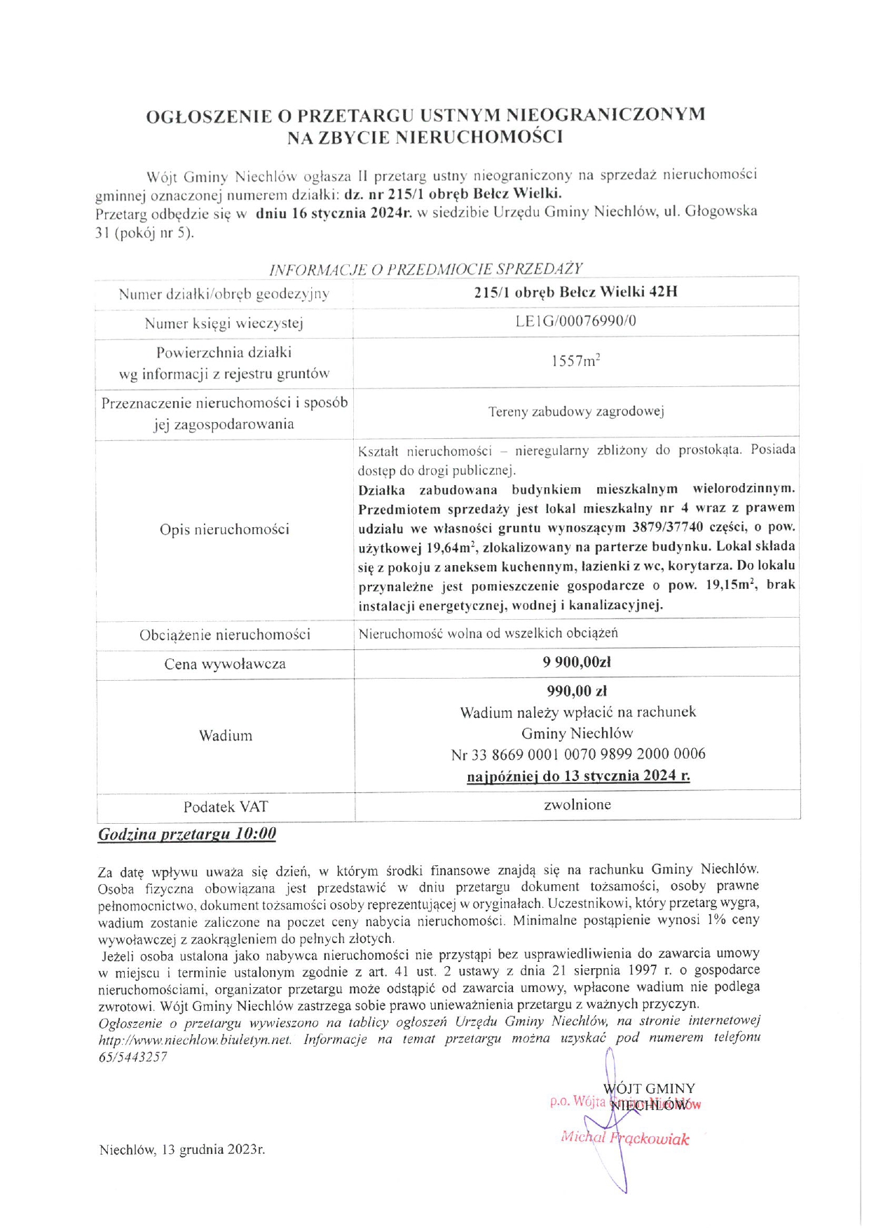 Czytaj więcej: Zarządzenie nr 158/2023 Wójta Gminy Niechlów z dnia 14 grudnia 2023 r. w sprawie ogłoszenia...