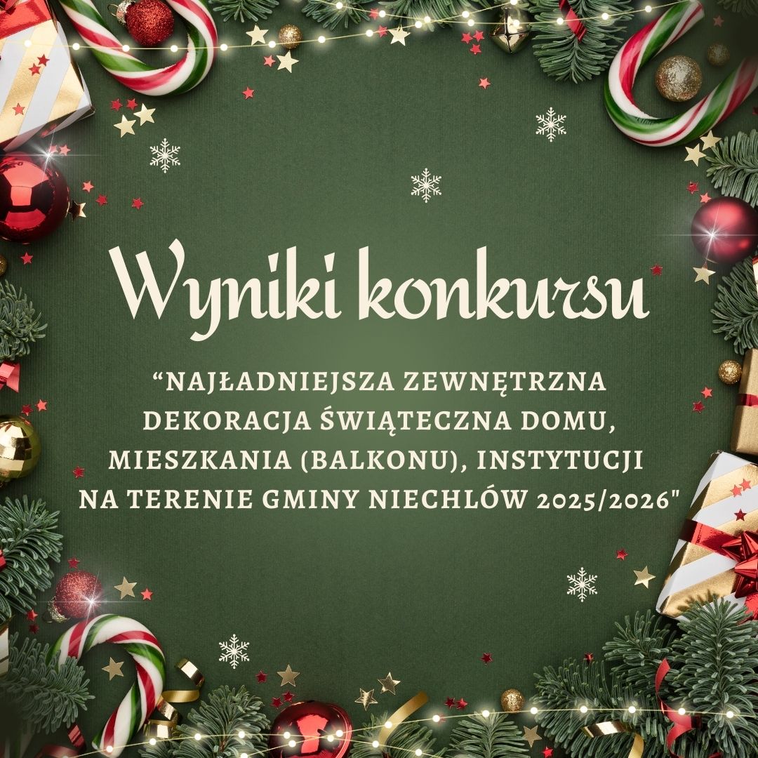 z radością ogłaszamy wyniki tegorocznego konkursu pn. “Najładniejsza zewnętrzna dekoracja świąteczna domu, mieszkania (balkonu), instytucji na terenie Gminy Niechlów 2025/2026"✨ Serdecznie dziękujemy wszystkim uczestnikom za kreatywne i pełne magii zgłoszenia – dzięki Wam nasza gmina rozbłysnęła wyjątkowym blaskiem. 🌟