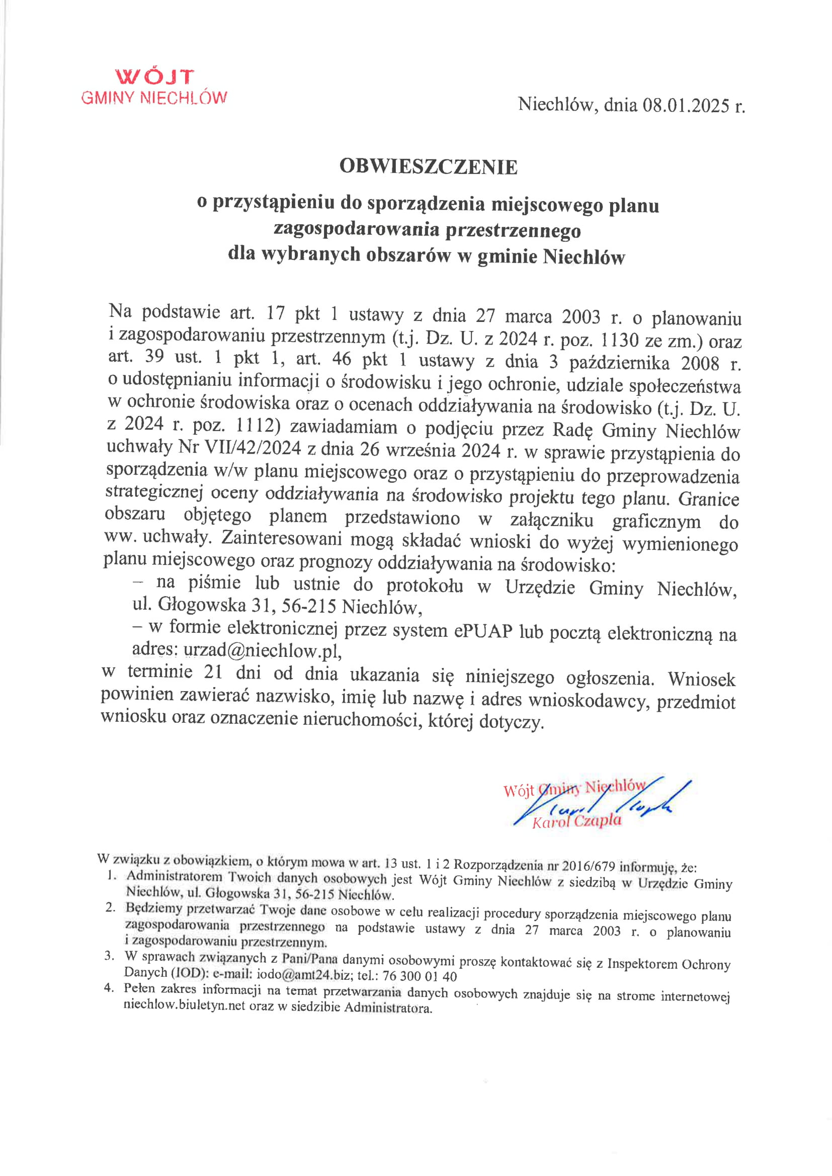 ➡Osoby fizyczne, niebędące przedsiębiorcą: Składają informację do Wójta Gminy Niechlów.