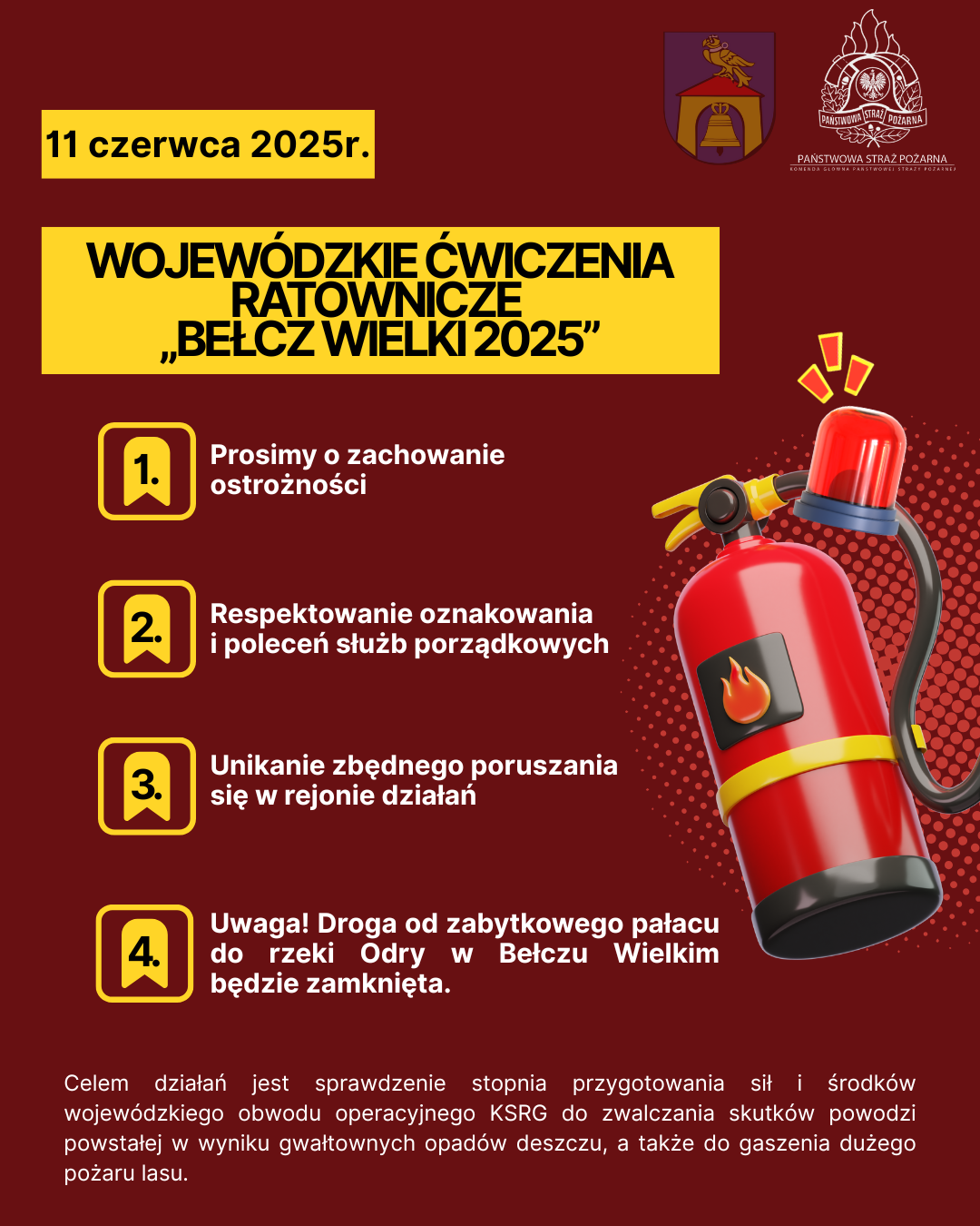 11 czerwca 2025 r. w Bełczu Wielkim i Głobicach, na terenie naszej Gminy, odbędą się wojewódzkie ćwiczenia ratownicze organizowane przez Komendę Wojewódzką PSP we Wrocławiu.