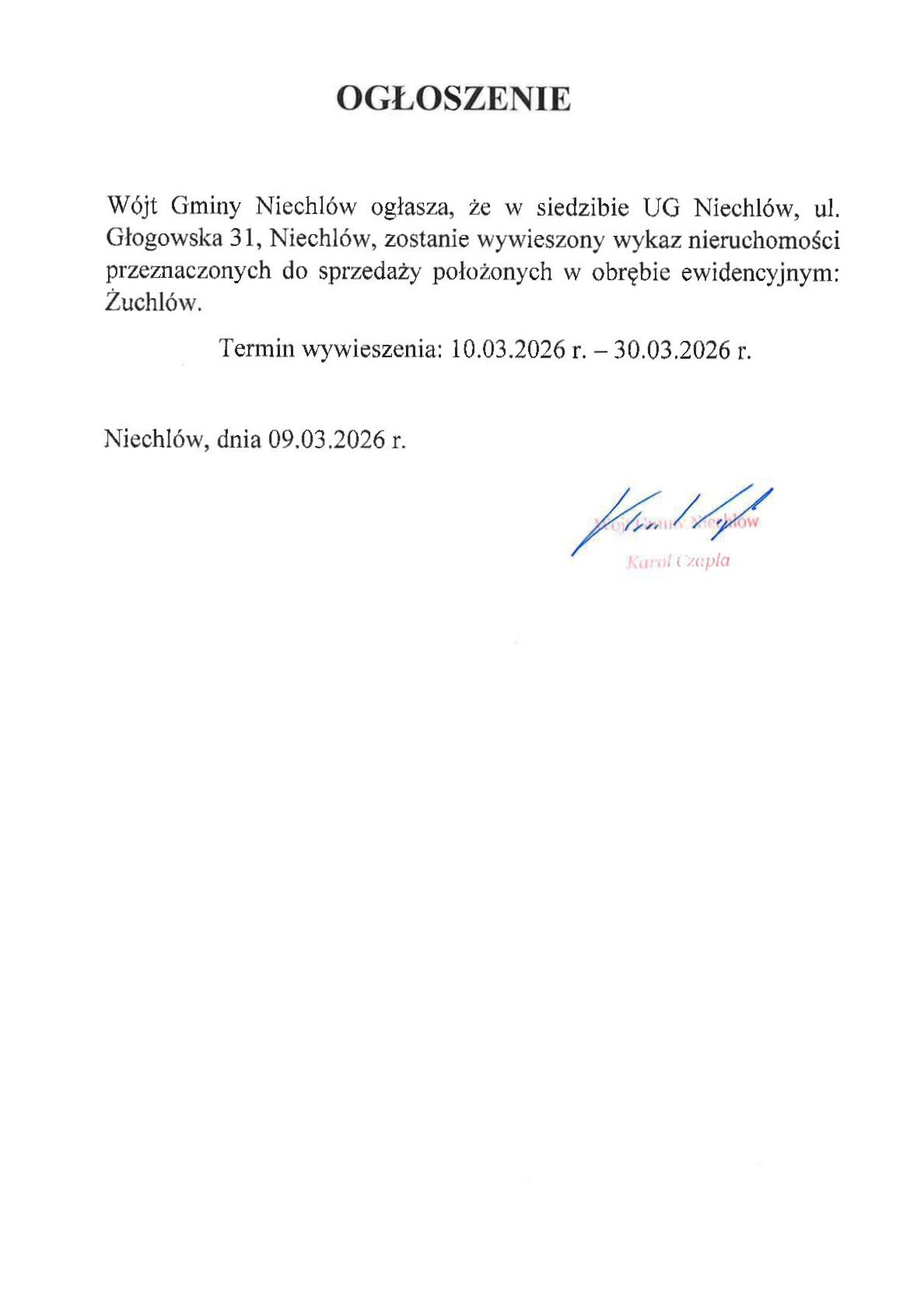 Zakład Gospodarki Komunalnej, Mieszkaniowej i Wodociągów w Niechlowie informuje, że w związku z planowanymi pracami na sieci wodociągowej w miejscowości Naratów, 11 marca 2026 r. (środa) w godzinach 10:00–12:00 może wystąpić czasowe wstrzymanie dostaw wody.