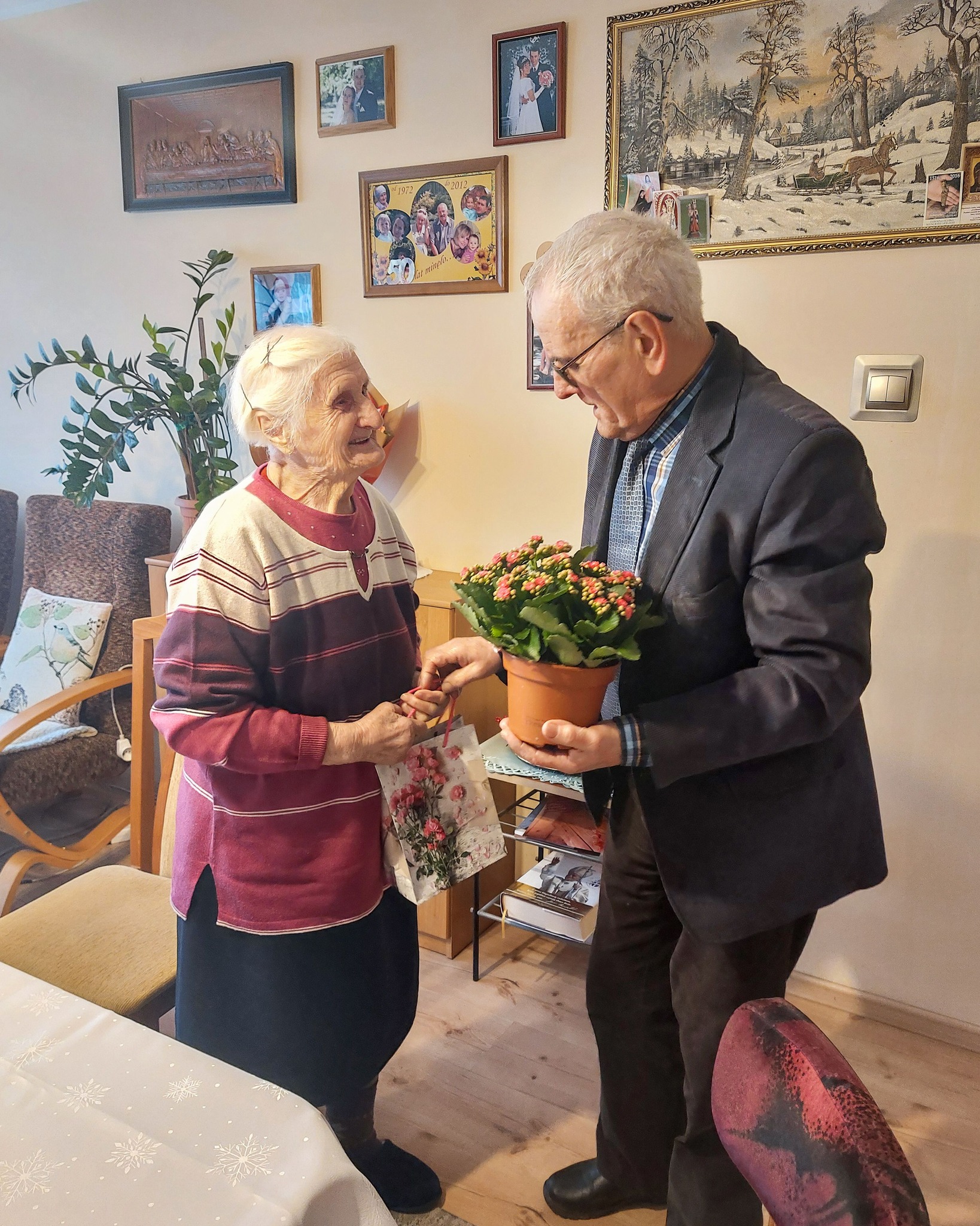 Pani Adela, która jest mamą, babcią dwóch wnuków oraz prababcią czworga prawnuków, przyjęła gości z uśmiechem i nie kryła wzruszenia. Z wdzięcznością podziękowała za pamięć oraz zaangażowanie w przygotowanie tego miłego spotkania. Spotkanie przebiegło w serdecznej i pełnej życzliwości atmosferze.