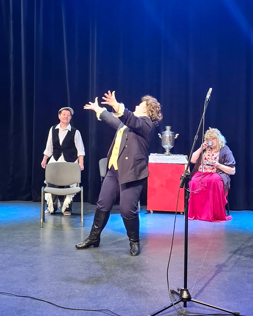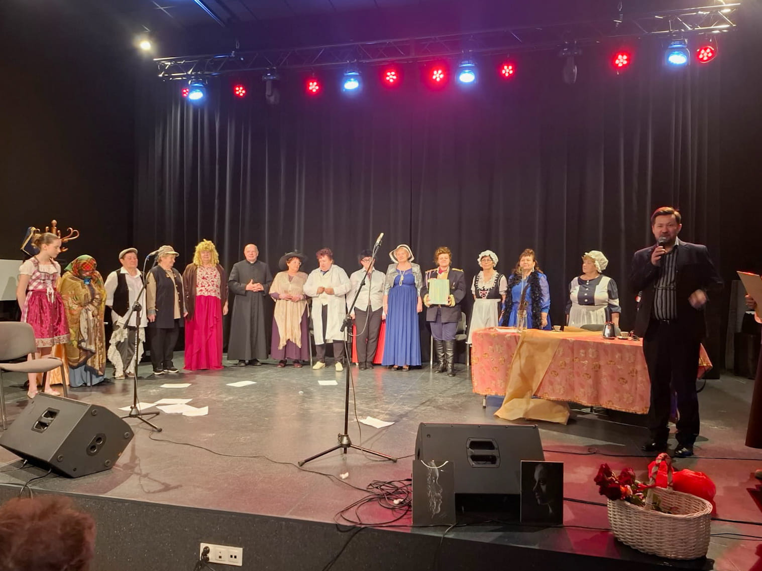 Po części warsztatowej nadszedł czas na chwilę dobrej zabawy. Na scenie pojawili się aktorzy ze Stowarzyszenia Odnowa Wsi Wroniniec oraz Strefy 60+, którzy zaprezentowali spektakl „Koń by się uśmiał”. Humorystyczna sztuka pełna zabawnych sytuacji szybko wciągnęła publiczność i dostarczyła wielu powodów do śmiechu.