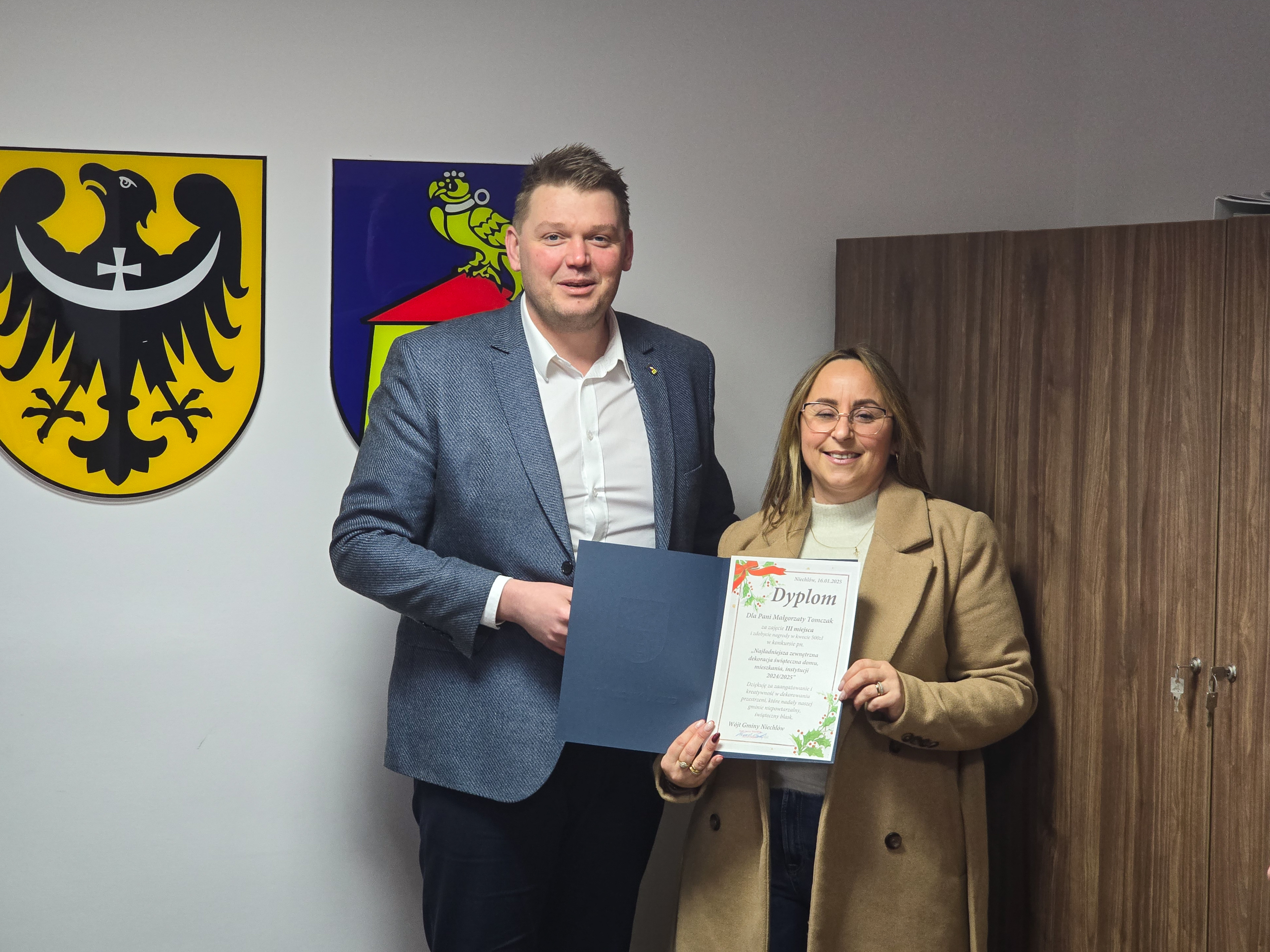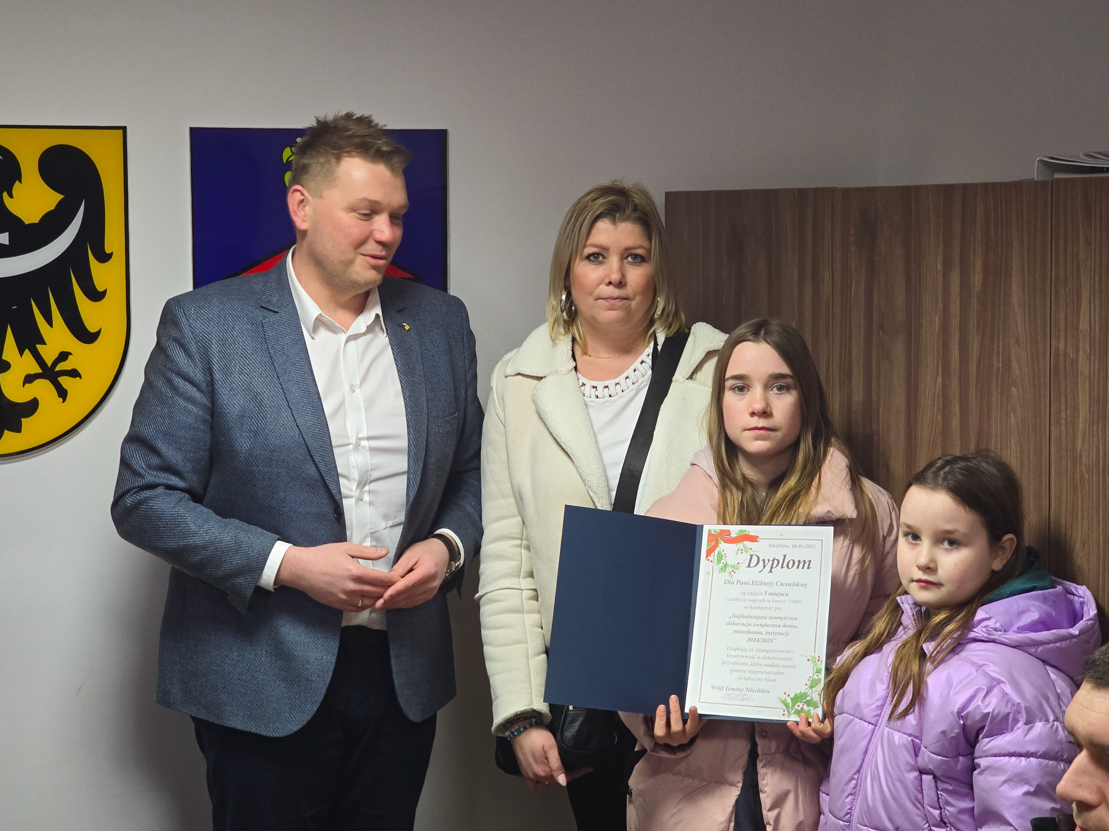 W czwartek, 16 stycznia, zwycięzcy spotkali się z Wójtem Gminy Niechlów Karolem Czaplą. Włodarz złożył serdeczne gratulacje, wręczył pamiątkowe dyplomy oraz spędził z laureatami czas na miłej rozmowie. Było to miłe spotkanie, pełne serdeczności i uznania dla pomysłowości Mieszkańców.