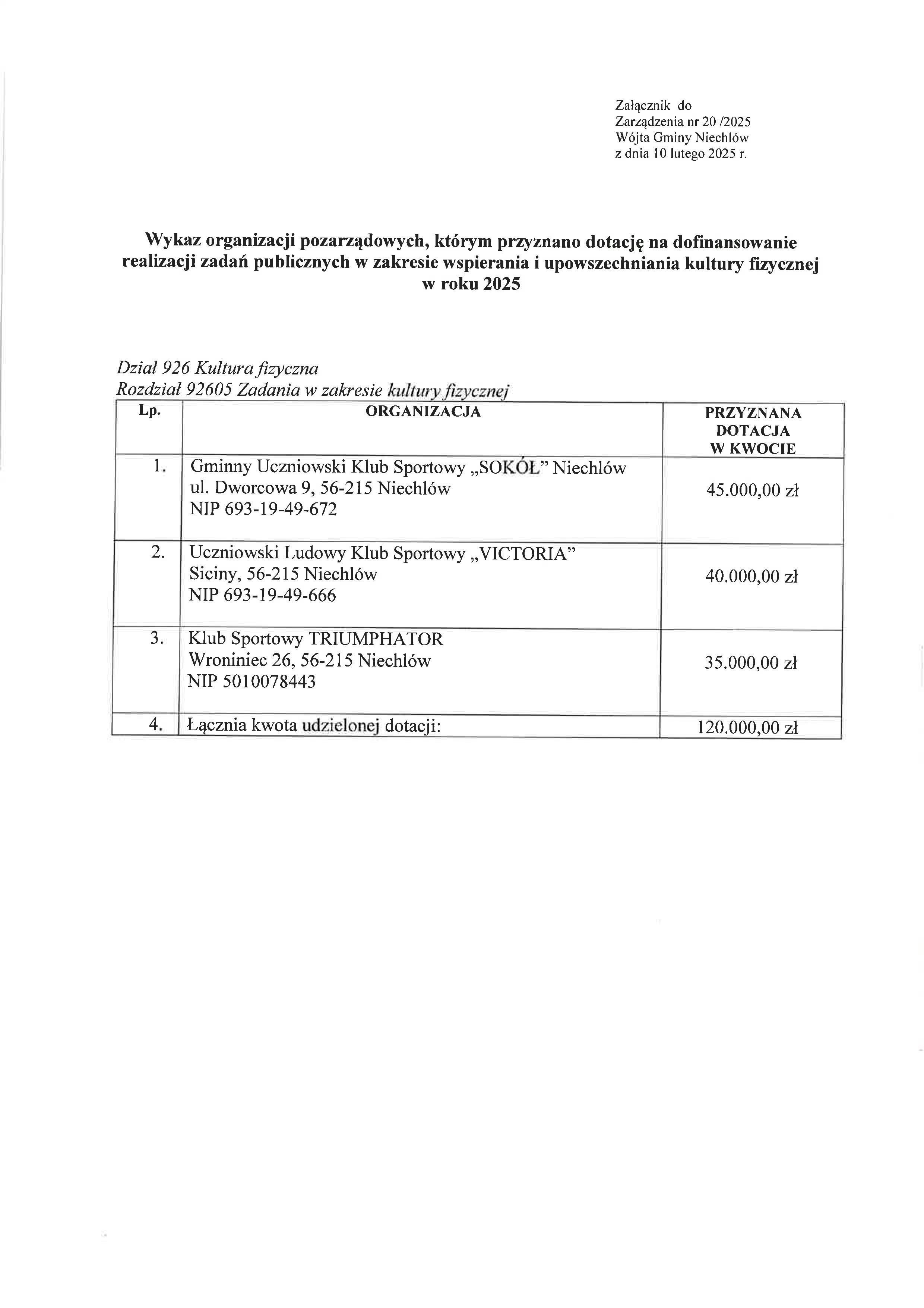 Zarządzenie Wójta Gminy Niechlów