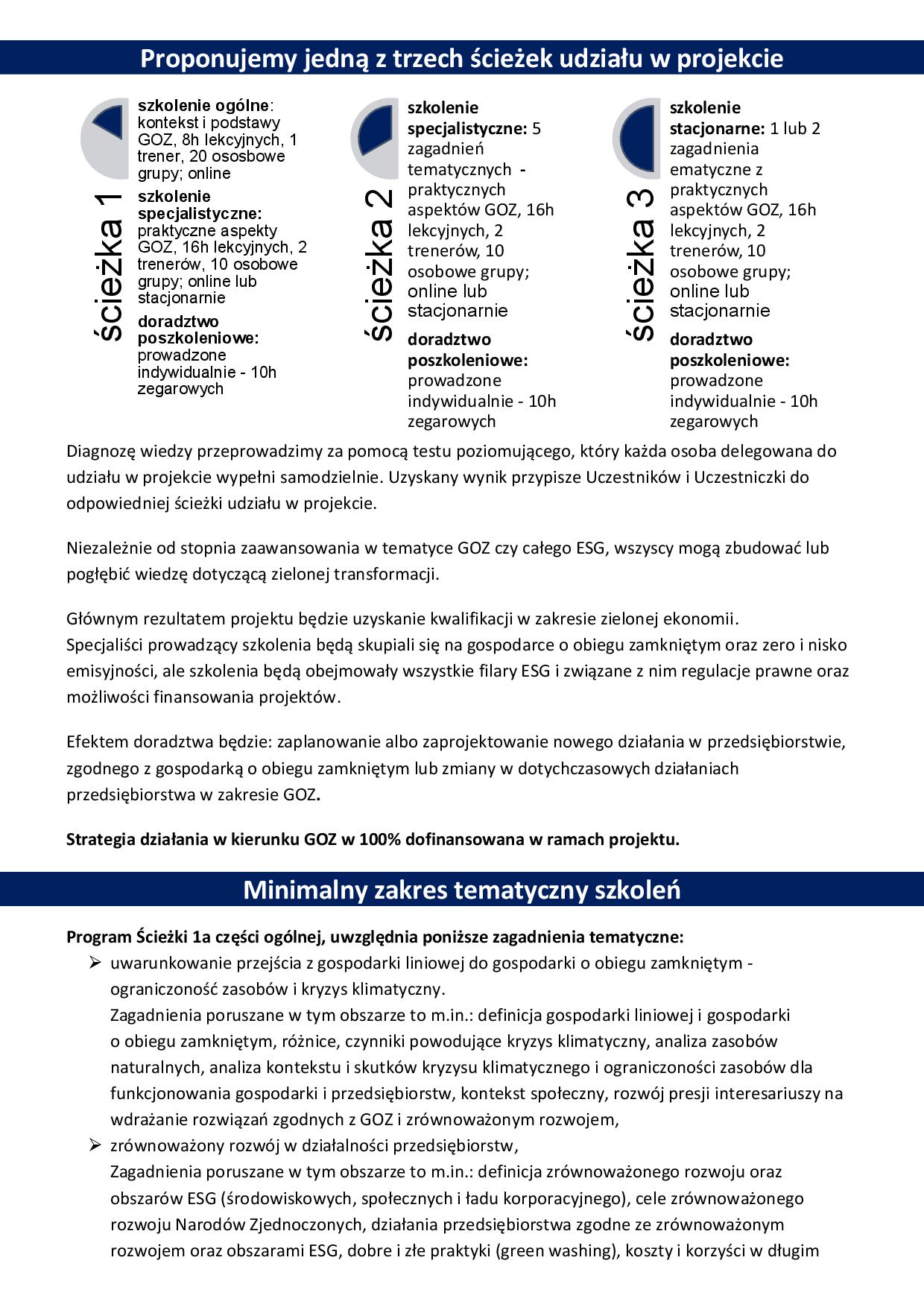 📌 Projekt skierowany jest do firm, które chcą rozwijać kompetencje w zakresie Gospodarki o Obiegu Zamkniętym (GOZ) – jednego z kluczowych filarów ESG, wpływającego na jakość raportowania pozafinansowego.