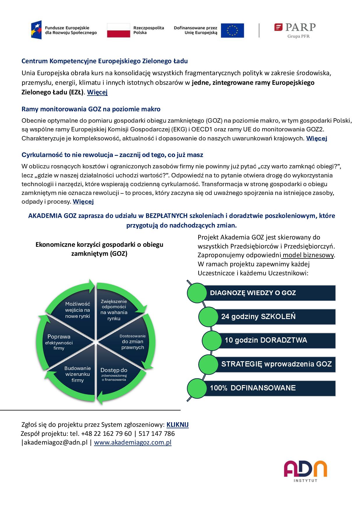 ♻ Uruchomiony został projekt Akademia GOZ, realizowany przez Krajową Izbę Gospodarczą oraz Instytut ADN sp. z o.o. sp. k. w ramach programu FERS.