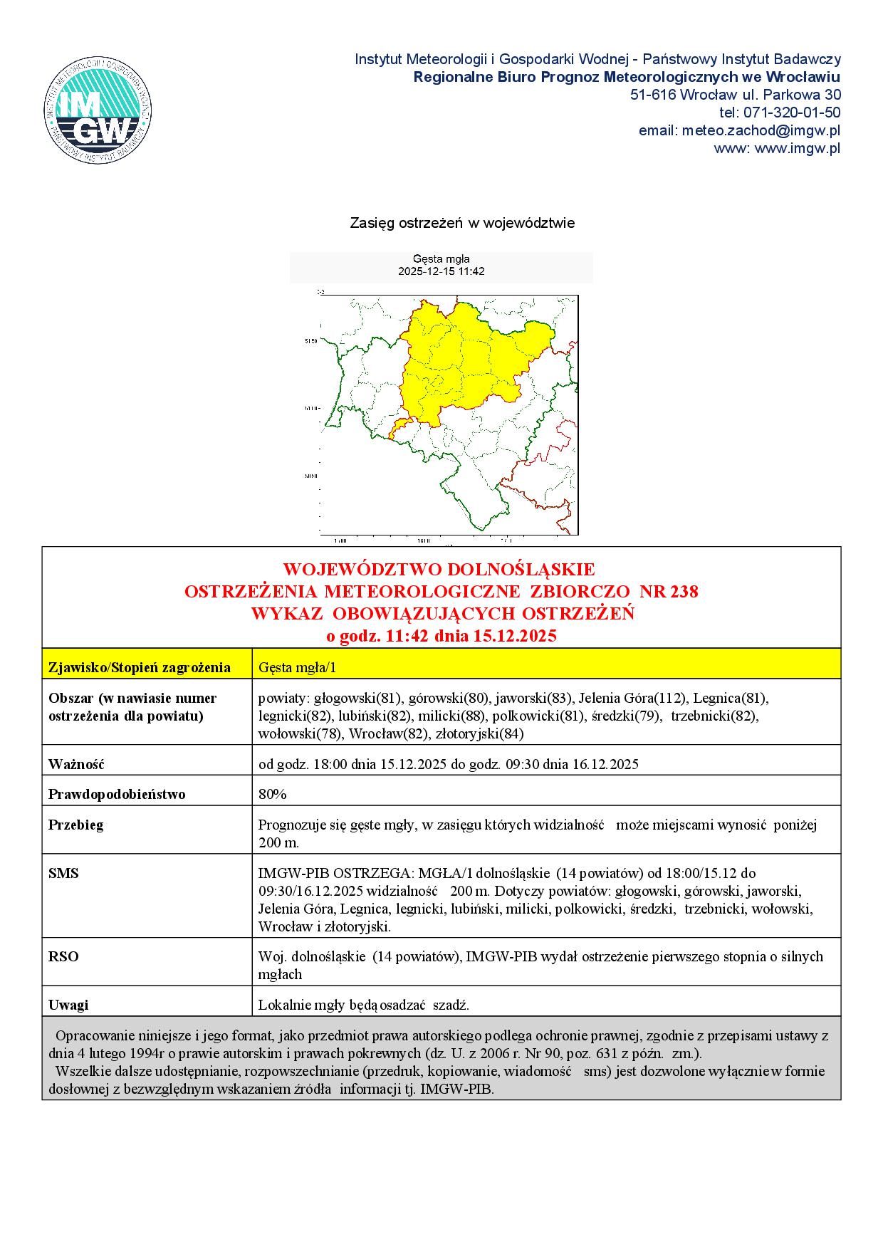 Instytut Meteorologii i Gospodarki Wodnej wydał ostrzeżenie dla województwa dolnośląskiego. Zachęcamy do zapoznania się z informacją. Szczegóły poniżej: