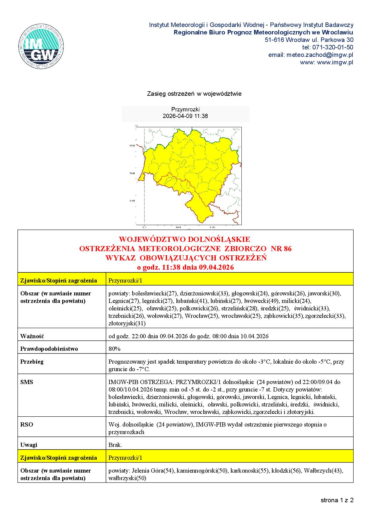 Instytut Meteorologii i Gospodarki Wodnej - IMGW PIB wydał ostrzeżenie meteorologiczne dla województwa dolnośląskiego, w tym powiatu górowskiego.