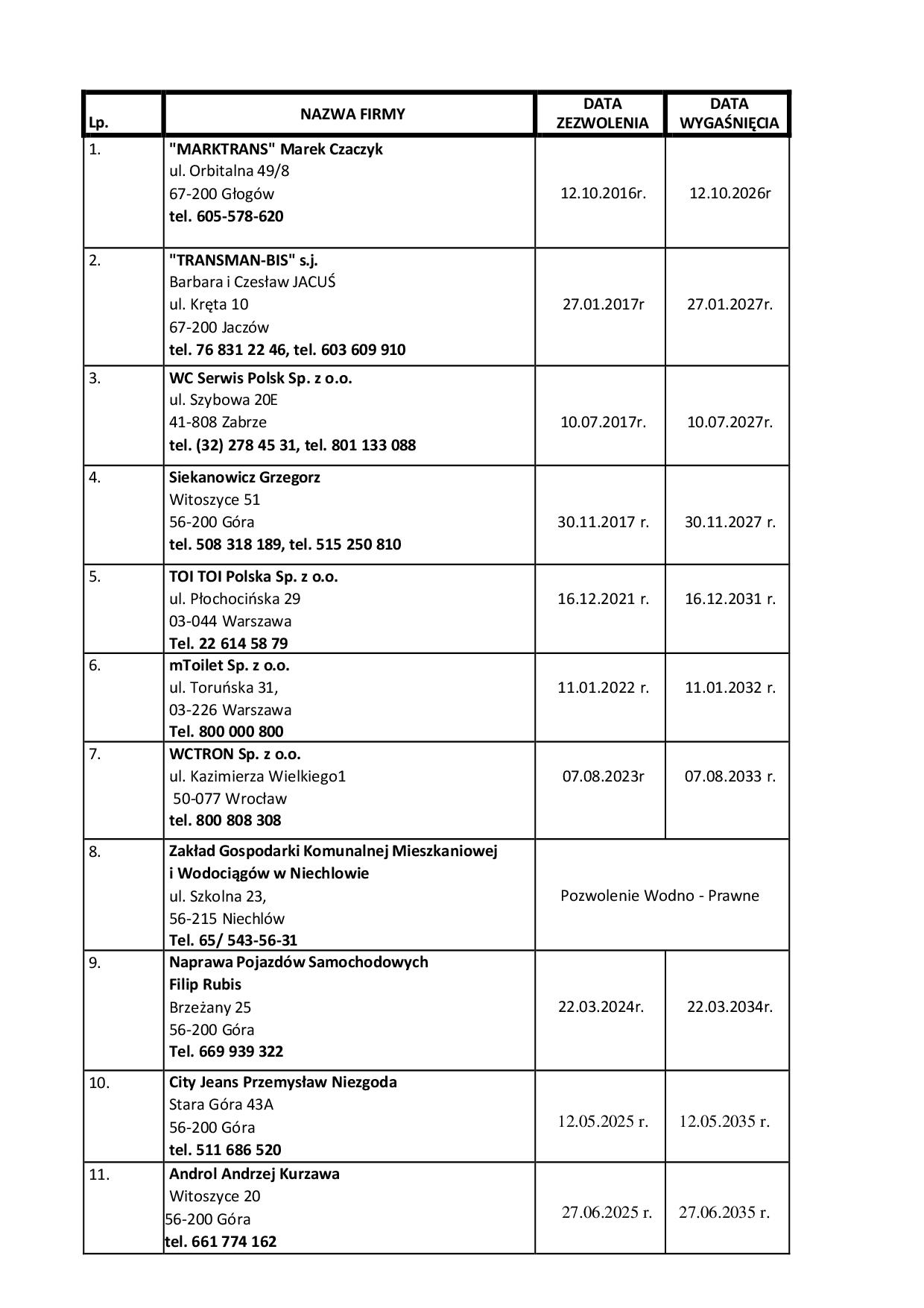 Podmioty uprawnione do opróżniania zbiorników bezodpływowych
