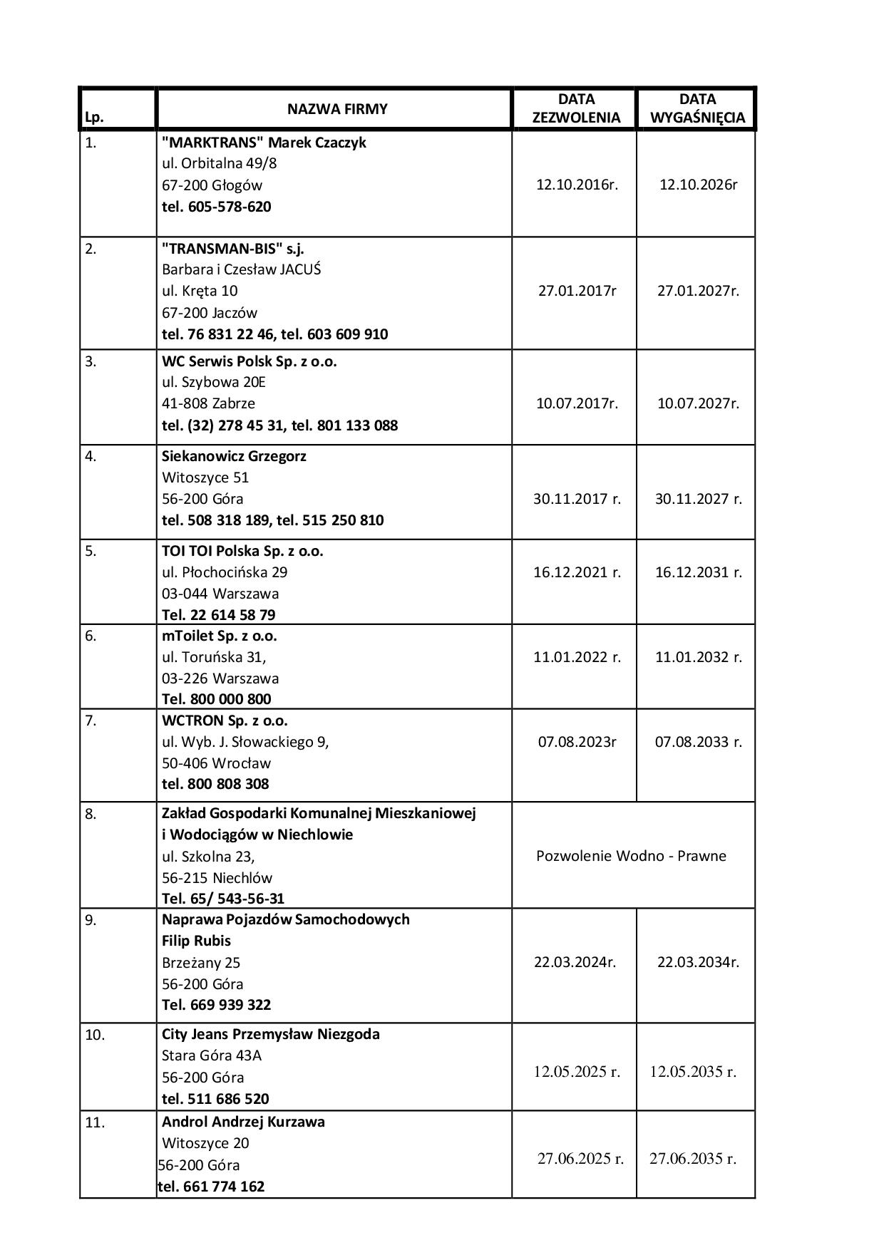 AKTUALNA LISTA FIRM ASENIZACYJNYCH