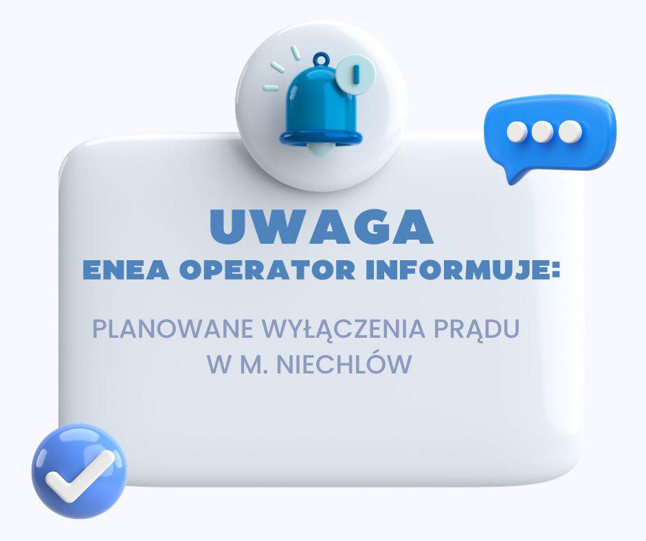 W dniu 6 listopada 2025 r. (czwartek) w godzinach 7:30-16:00 na terenie m. Niechlów - ul. Leszczyńska nr 23 (hydrofonia), ul. Nowa (cała), ul. Sportowa nr 7-9, 12-14, działka nr 321 - planowane są wyłączenia dostawy energii elektrycznej.