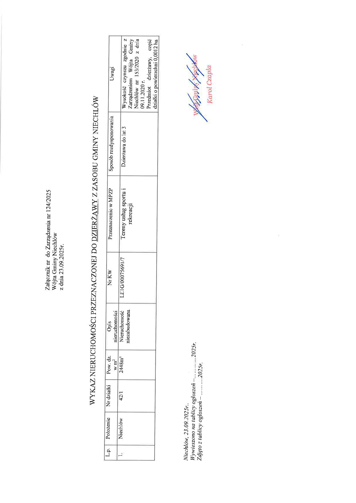 Uchwałą Zarządu Wojewódzkiego Funduszu Ochrony Środowiska i Gospodarki Wodnej we Wrocławiu nr 185/2025 z dnia 09.05.2025 r., gminie Niechlów zostało przyznane dofinansowanie w formie dotacji do kwoty 5 859,00 zł na wykonanie zadania pn.: "Usuwanie wyrobów zawierających azbest z terenu Gminy Niechlów w 2025 roku". Zadanie zrealizowano w dniach 30-31 lipca 2025 r. poprzez odbiór i transport wyrobów zawierających azbest od mieszkańców, którzy zgłosili chęć jego usunięcia poprzez złożenie odpowiedniego wniosku. Wykonawcą zadania była firma Logistyka Odpadów – Realizacje Sp. z o.o. Wyroby zostały przekazane na składowisko celem utylizacji. W 2025 r. z terenu gminy usuniętych zostało 13,910 Mg wyrobów zawierających azbest. Łączny koszt realizacji zadania wyniósł 14 106,41 zł.