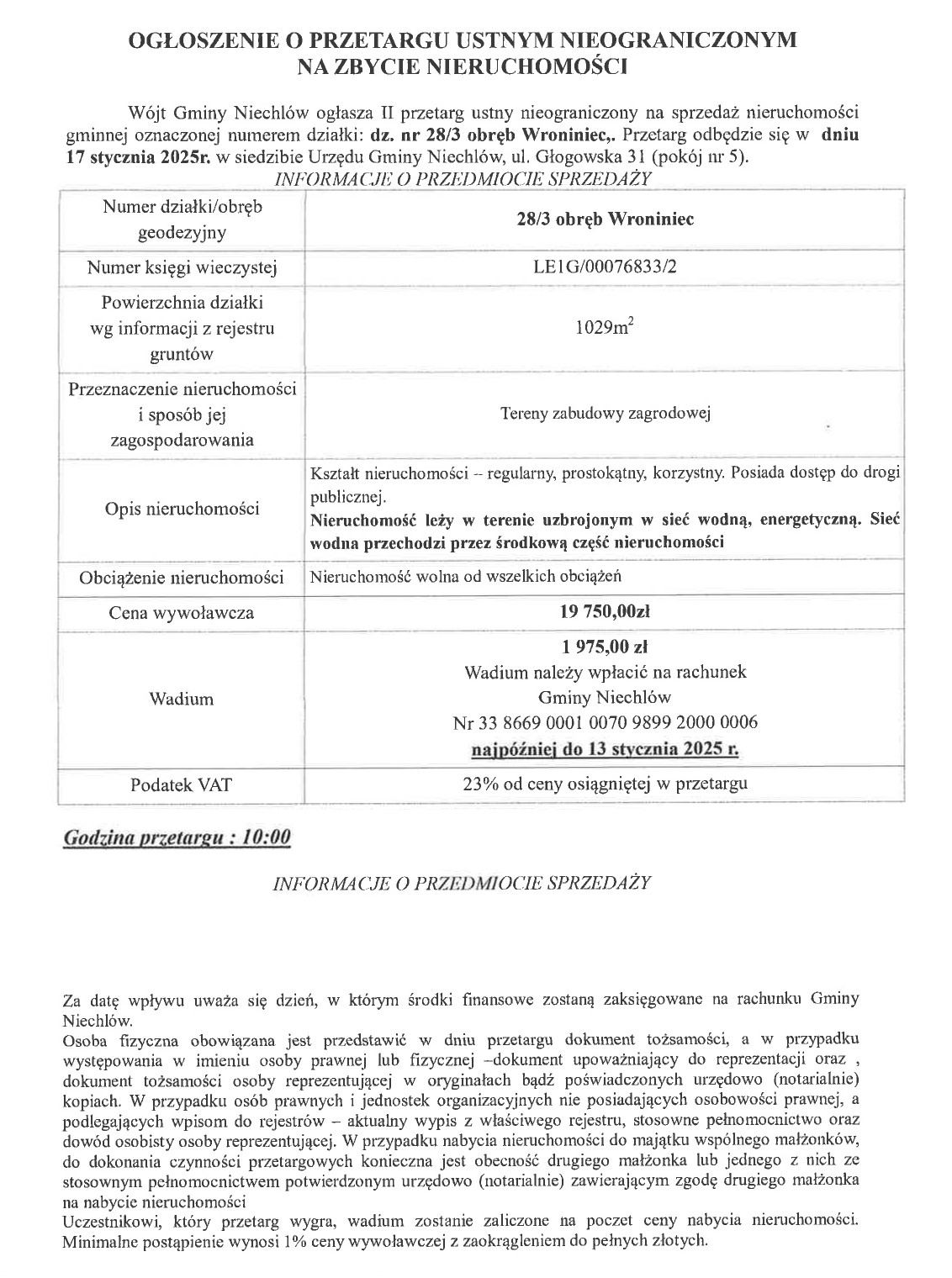 Czytaj więcej: Ogłoszenie o II przetargu ustnym nieograniczonym na zbycie nieruchomości