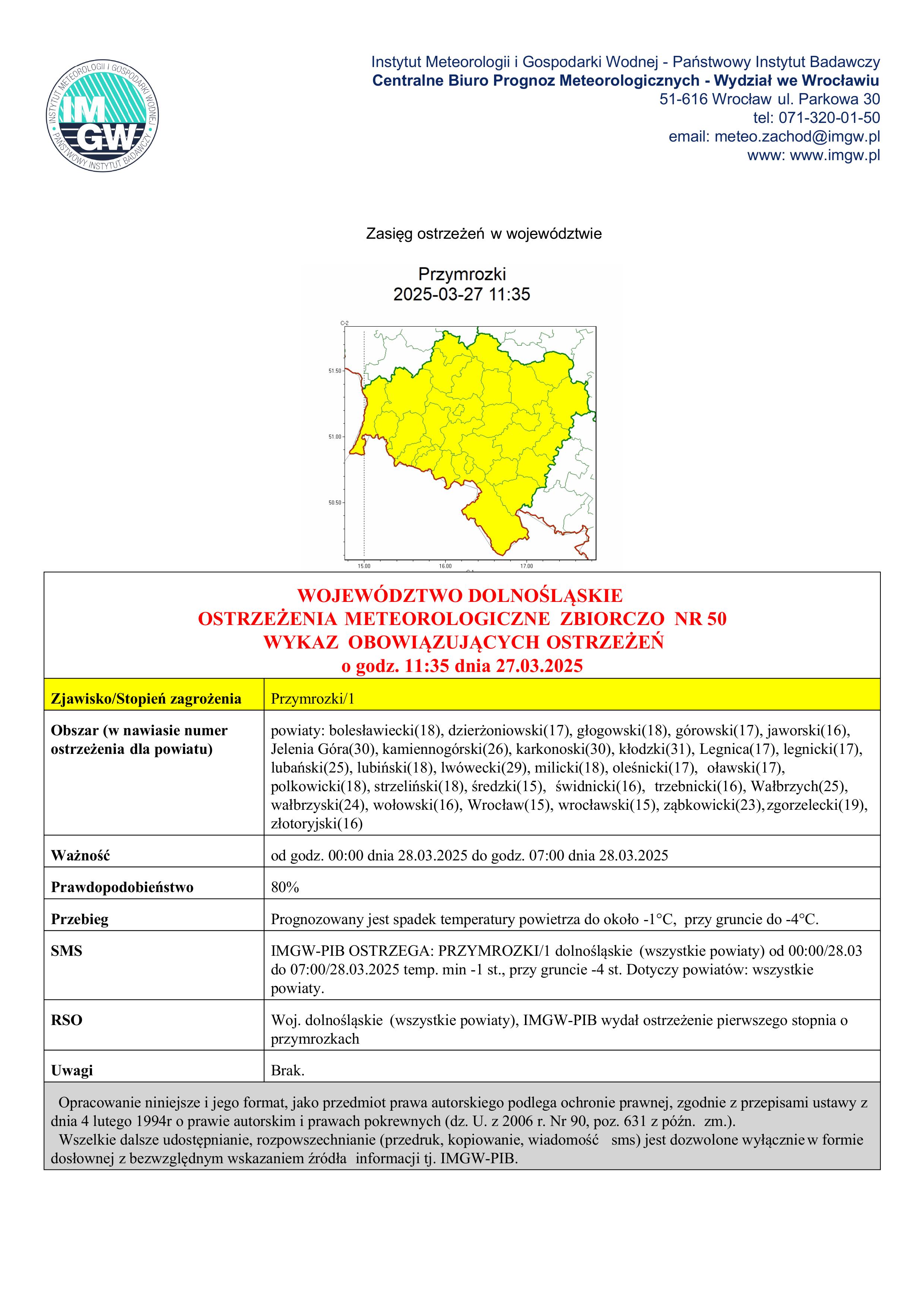 Okres obowiązywania: 28 marca 2025 r., godz. 00:00 – 07:00