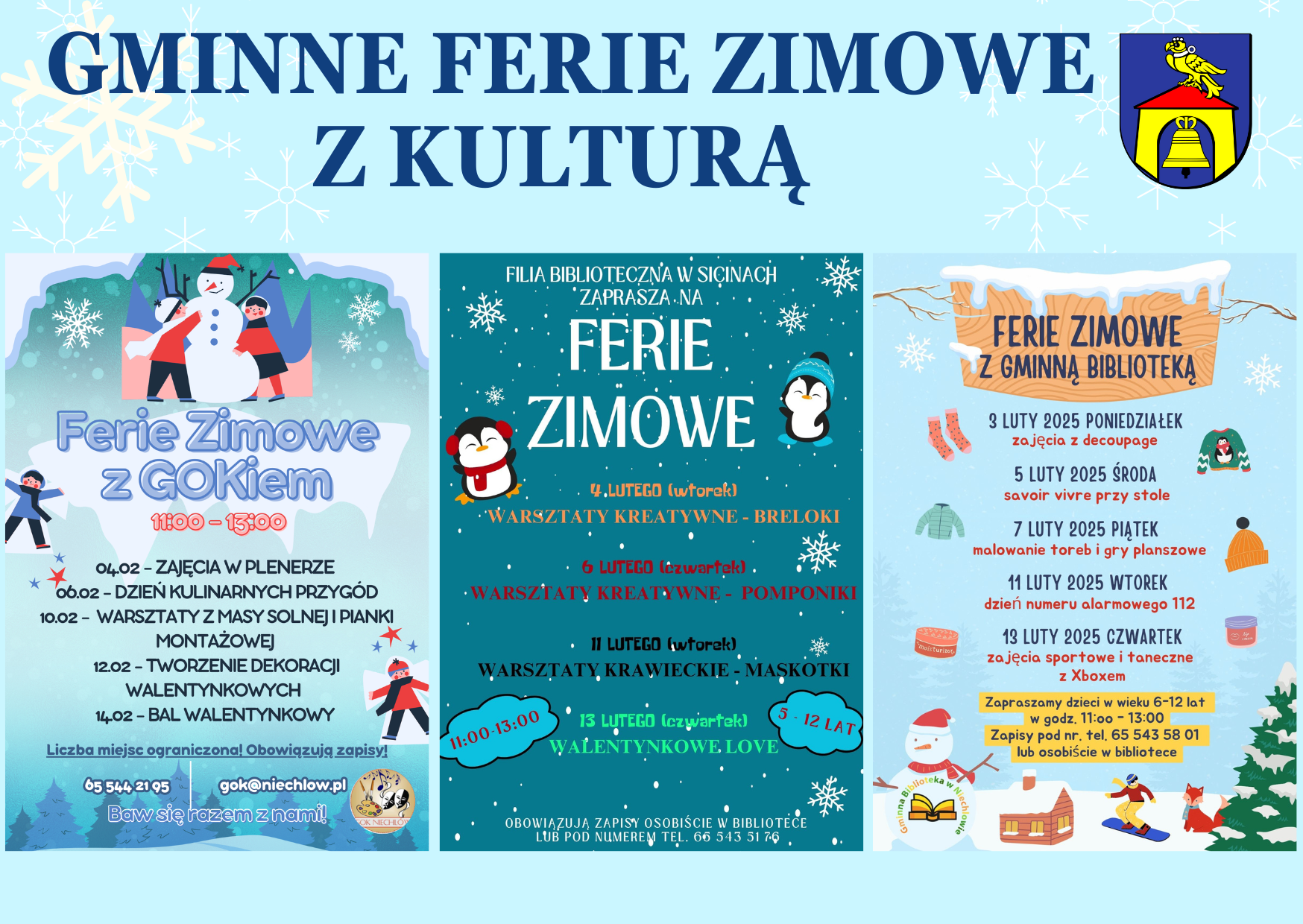 Już niebawem startujemy z wyjątkowymi Gminnymi Feriami Zimowymi z Kulturą - dwa tygodnie pełne wyjątkowych aktywności, zorganizowane z myślą o dzieciach i młodzieży z naszej gminy.