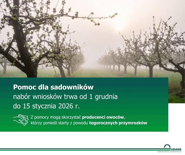 📌 Trwają zadania związane z udzieleniem nadzwyczajnego wsparcia finansowego producentom owoców poszkodowanym na skutek wystąpienia niekorzystnych zjawisk klimatycznych wiosną 2025 r.